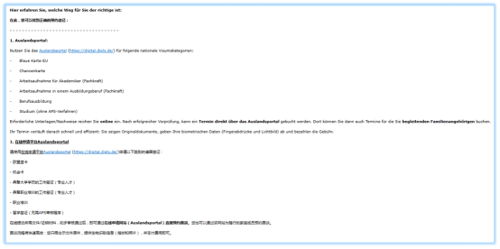 现状:虽然这些领区也在逐步推行在线预审,但目前仍有相当比例的蓝卡申请需通过大使馆官方预约系统 (RK-Termin) 预约面签。